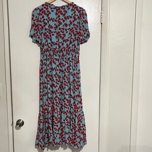 Betsey Johnson Blue and Red Floral Midi Dress size Médium