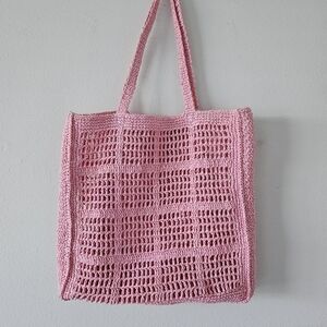 Chic and stylish ELLA pink crochet tote bag, perfect for any occasion. Lightweight and spacious, ideal for vacation! ๐ด