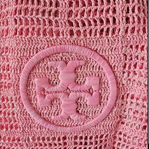 ๐TORY BURCH Pink Crochet ELLA Tote Bag logo authentic ๐๐๐