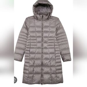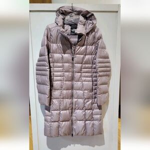 The North Face Metropolis Parka in lilac purple is a stylish and practical choice for winter and fall. With a knee-length design, this puffer jacket features long sleeves and a zip closure for easy wear. The down insulation and polyester lining provide warmth, while the removable hood adds versatility to the jacket. Perfect for casual occasions, this North Face parka in size small combines functionality with a fashionable solid color, making it a must-have for any woman's winter wardrobe.