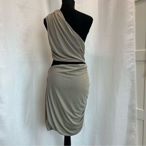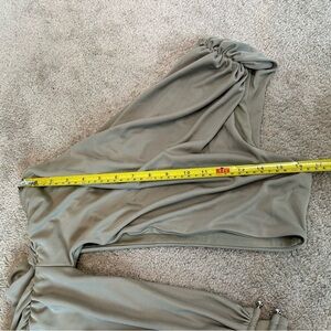 Zara khaki green draped ruched one shoulder asymmetrical cut-out mini dress XL