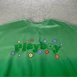 Playboy By Pacsun Sweatshirt Womens Small Green Crew Neck Embroidered Floral Y2K