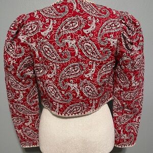 Sea New York Red Paisley Quilted Look Cropped Jacket Artsy Whimsical Chic Small