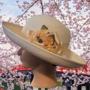 Cute lightweight woven spring straw hat, country cottage style, size small medium, shown on small size mannequin