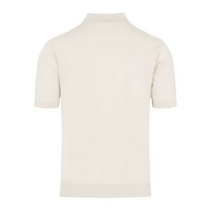 Ivory cotton knit polo shirt with horn button fastening, tone-on-tone embroidered logo, ribbed hem and sleeves.