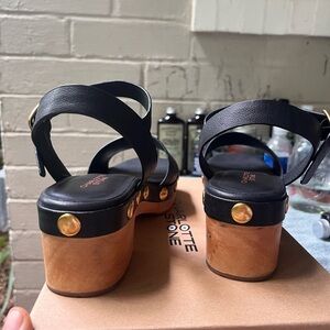 Stylish vintage inspired black platform sandals by Charlotte Stone. Features bold gold studs. Perfect for any occasion. Have been worn a few times and lovingly cleaned, conditioned and stored in box after use. Cheaper on Depop! @dimesadozen