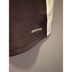 This Adidas polo is designed for men and comes in a size large. It features a classic black color with a solid pattern and a collared neckline. Made from ClimaCool fabric, it ensures comfort during warm summer days. The polo has short sleeves and a button closure, making it suitable for casual occasions or sports events. It includes an embroidered logo and is an official licensed product, with "West Brunswick" detailing. The garment is machine washable for easy care. Condition is new with tags.