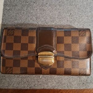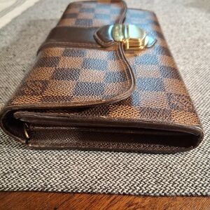 Louis Vuitton Damier Ebene Wallet with Gold Clasp