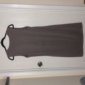 Chic sleeveless midi dress by Elie Tahari. Features a draped neckline. Perfect for versatile styling.