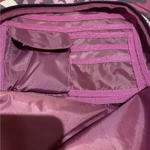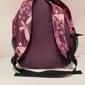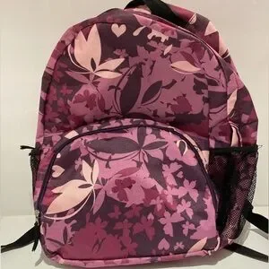 Item: Navy, Pink Flowers Backpack with small pocket and two mesh pockets on side
