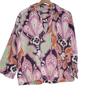 Zara Linen Paisley Top Long Sleeve Boho Cover Up Floral Retro Spring Pink
