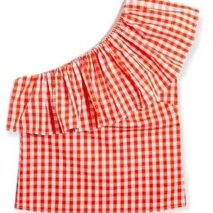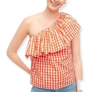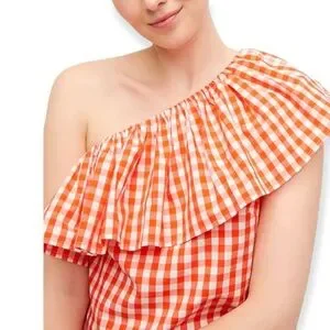 J. Crew XS Gingham Orange One Shoulder Top NWT
