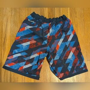 Boys Large (14/16) Columbia swim shorts featuring navy fabric with striking red and blue accents. Omni-shade sun protection.