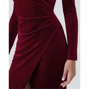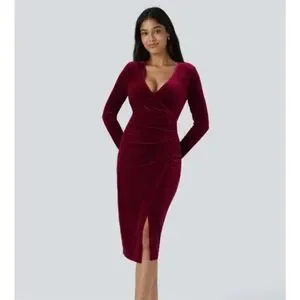 NWT Halara V Neck Long Sleeve Ruched Velvet Mini Dress Size M