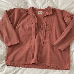 Rudy Jude terracotta smock in size small - could fit up to a large. Heavyweight but soft cotton. Very very minor dye fading on back at the top (see last photo).