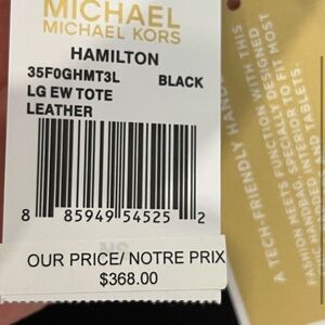 This Michael Kors satchel in classic black is a sophisticated accessory featuring gold-tone hardware and a structured design. Crafted from high-quality materials, it offers both elegance and versatility for any occasion.