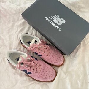 Brand new, only ever tried on indoors! Comes with a box. Gorgeous pink suede with navy accents. Original price $120 before tax.