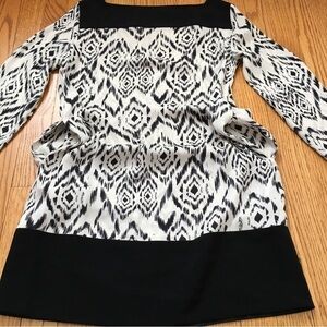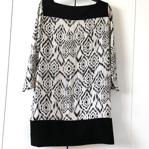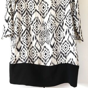 Zara Basic Black White Ikat Print 3/4 Long Sleeve Pullover Tunic Mini Dress