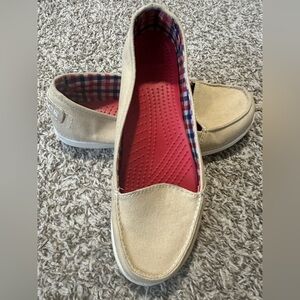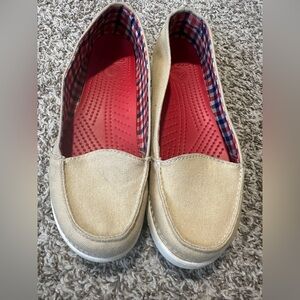 CROCS Melbourne II Short Vamp Flats Loafers Slip-on Shoes Size W8 Tan Beige. Condition is Pre-owned.