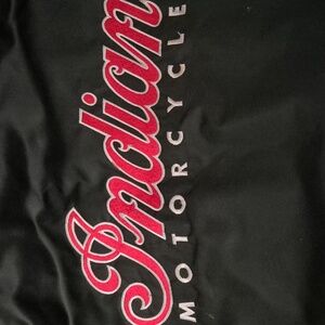 Stay stylish and comfortable with this Indian Pioneer Motorcycle black bomber jacket. Perfect for any casual outing. I have had this jacket for fifteen years, I have not washed it, no smell, elastic is in great condition, ptp 23"