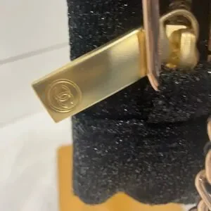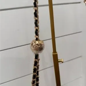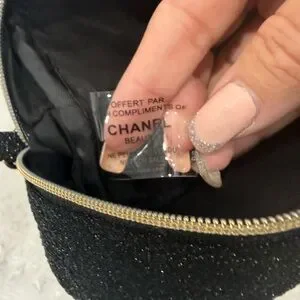 The CHANEL Beaute Cosmetic Makeup Bag Pouch Clutch in Glitter Black with added removable and adjustable strap. With dimensions of 8 inches in length, 5.5 inches in height, and 2 inches in width, it is the perfect size for on-the-go touch-ups. The bag also comes with a gift box, making it a great present for any beauty lover.