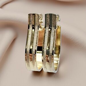 Vintage Yellow Gold Plated Textured Hoop Earrings