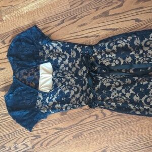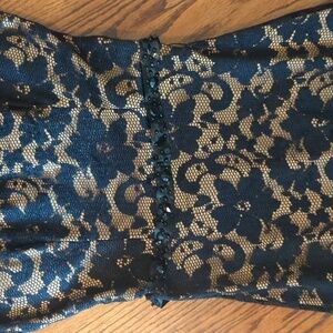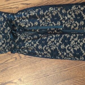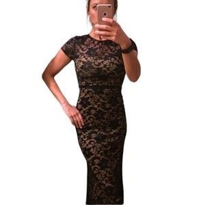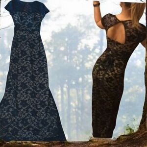 Windsor Black Lace Illusion Long maxi dress Gown – marked Size 3/4 but runs small nude lining