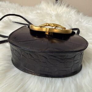 From the 80's , Glenn Miller for Ann Turk mock croc leather bag with gold beutifull toned mascaron and long alligator 's strap,