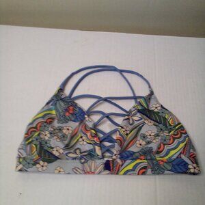 Victoria's Secret Sport Bra M Lace Up Yoga Active No Padding Floral Colorful