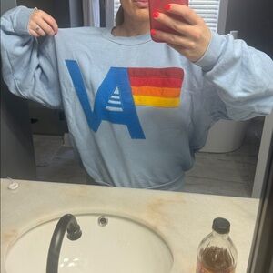 Light blue pants with bold logo design. Comfortable and stylish for everyday wear.