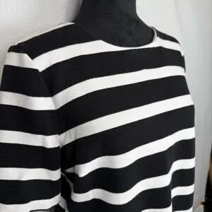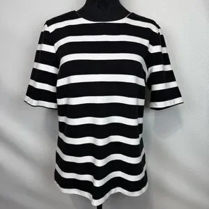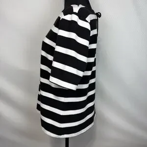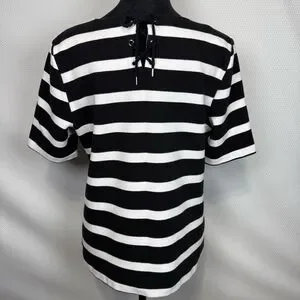 Talbots Lace-Back Black & White Striped Short Sleeved Knit Top Large
