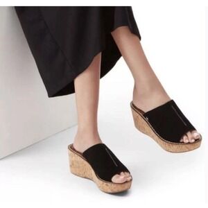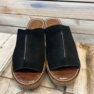 Sam Edelman Ranger Cork Wedge Slide Black Suede Platform Sandals 7.5