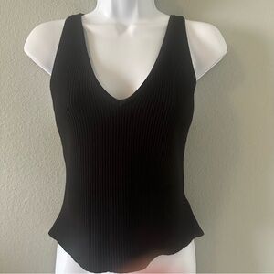 Thick ribbed rayon blend knit tank. Nice stretch and support. Great cropped layering piece.