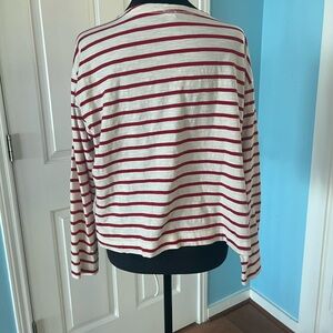 Old Navy Red White Stripe Loose Mariner Long-Sleeve Henley T-Shirt Sz M