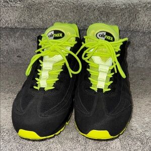 Bold Nike sneakers with a black and neon yellow design. Features Air Max cushioning for comfort. Very Good condition. Worn minimally. Smoke/Pet Free home.