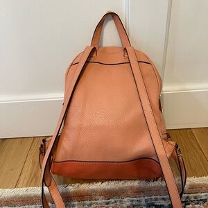 Michael Kors Pink Orange Pebbled Leather Backpack Double Handles Zipper Accent
