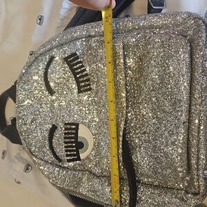 Chiara Ferragni Silver Glitter Eye Backpack