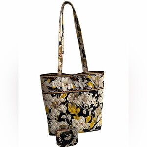 Vera Bradley Floral Quilted Tote Bag Purse with Matching kiss me lock Pouch SET