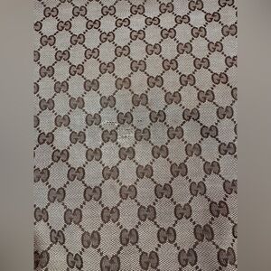 Elegant Gucci tote with signature monogram design. Features dark brown leather accents and adjustable strap bag in good condition with some damage on the fabric and all brown color leather rubbed see photos.