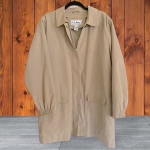 L.L. Bean Tan Trench Coat with removable zip-out lining. Full front Zip with button collar Adjustable elastic 2-button sleeves, functional from patch/flap pockets. LIKE NEW