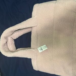 Soft and plush tote. Ideal for daily essentials. Features embroidered logo.
