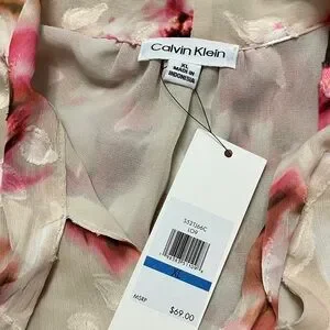 💐 Calvin Klein Tie-neck Blouse Sz XL in Cream/Pink Floral Motif