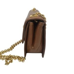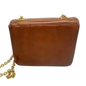 Vintage Brown Leather Gold Sun Medallion Chain Shoulder Bag USA Made