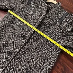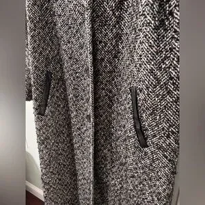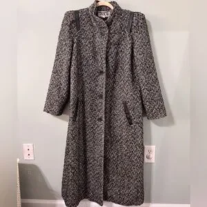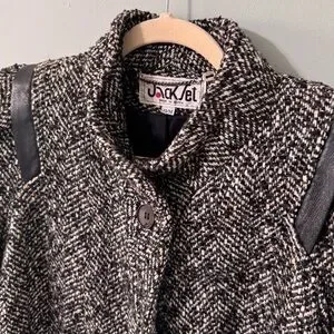 Vintage 80s The Jack Set Women’s Tweed Wool Coat Leather Trim Padded Shoulder