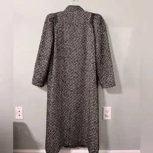 The Vintage 80s The Jack Set Women’s Tweed Wool Coat is a stylish and unique piece from a bygone era. This coat features a wool blend material with a gray color and leather trim, giving it a classic yet edgy look. The padded shoulders add a touch of sophistication, making it a versatile addition to any woman's wardrobe. Perfect for those who appreciate vintage fashion and want to make a statement with their outerwear.
