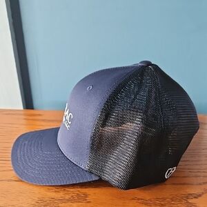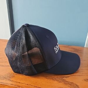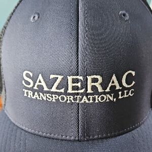 Navy blue trucker hat with Sazerac Transportation, LLC logo. Mesh back for breathability. New without tags