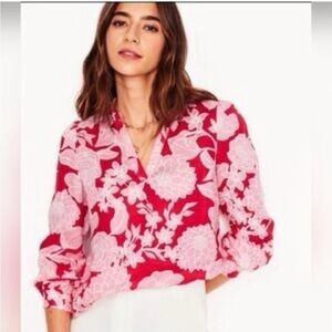 Boden Grace Linen Top Blouse Floral Red and Pink Size 6 linen