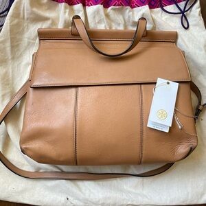 Tory Burch Classic Block-T Structured Leather Flap Closure Satchel Crossbody