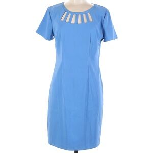 AB Studio Blue Cutout Neck Sheath Dress Size 10 Business Casual Midi