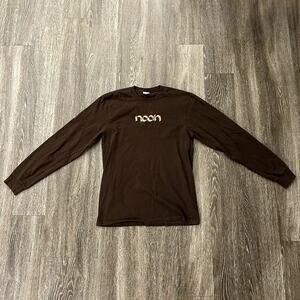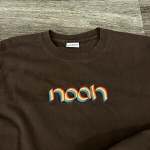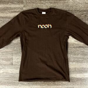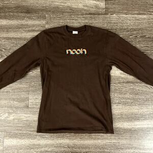 EUC Noah NYC Embroidered Rainbow Logo Brown Long Sleeve T-Shirt Sz M Streetwear